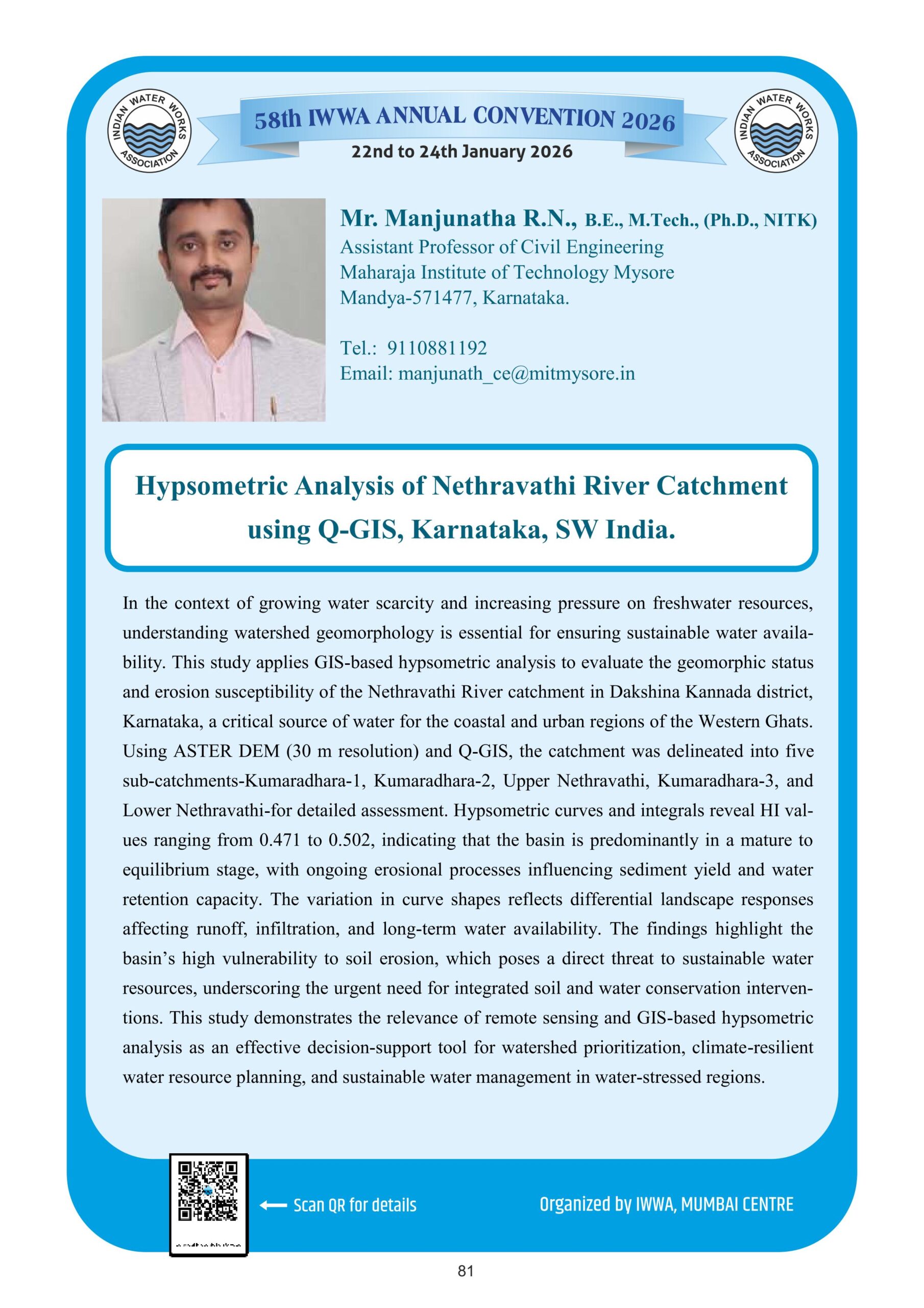 29. Hypsometric Analysis of Nethravathi River Catchment using Q-GIS, Karnataka, S-W India