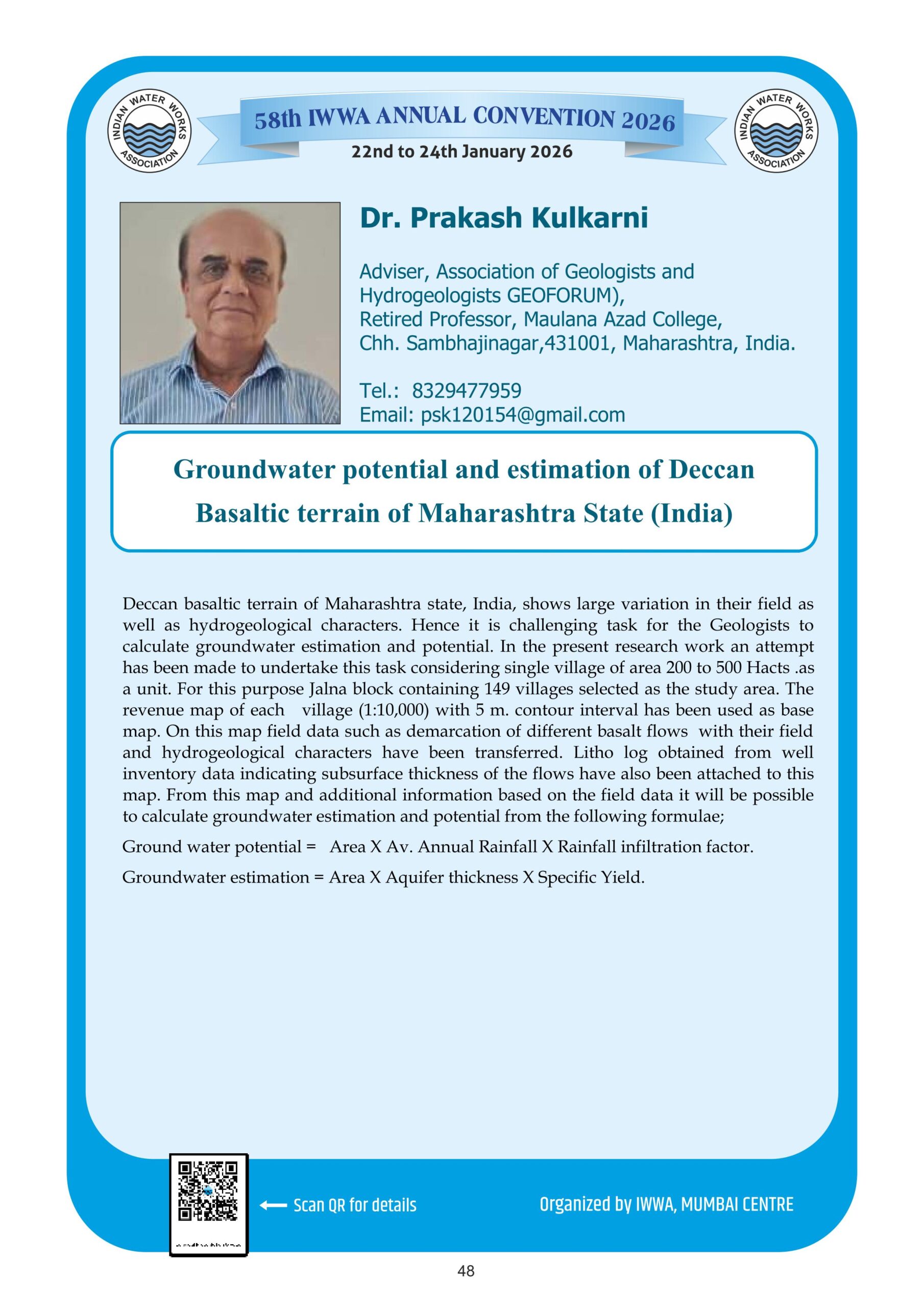 30. Groundwater potential and estimation of Deccan Basaltic terrain of Maharashtra State (India)